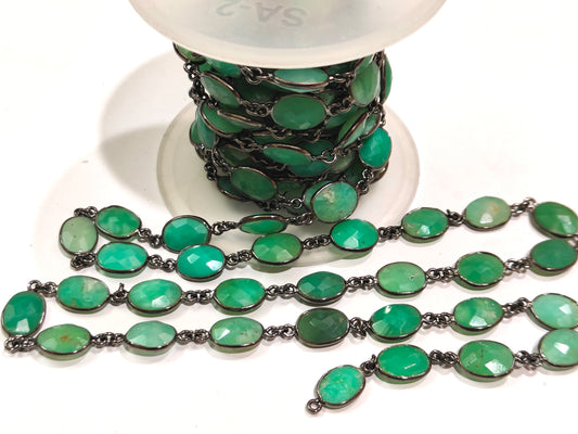 Natural Chrysoprase Oval Briolette Faceted 9x12mm Bezel Connector Chain Sold Per Foot