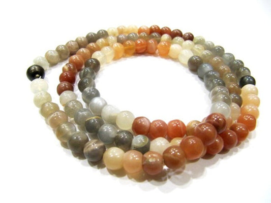 Natural Multi Moonstone Round Plain Smooth 7mm Beaded Necklace 26 Inches Long With Magnetic Clasp Top Quality Wholesale prices