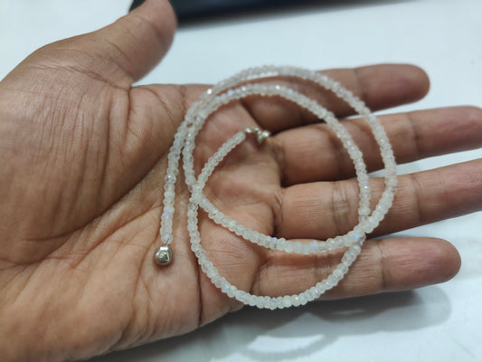 Rainbow Moonstone Beaded Necklace: Faceted Rondelle Gemstone, Magnetic Clasp
