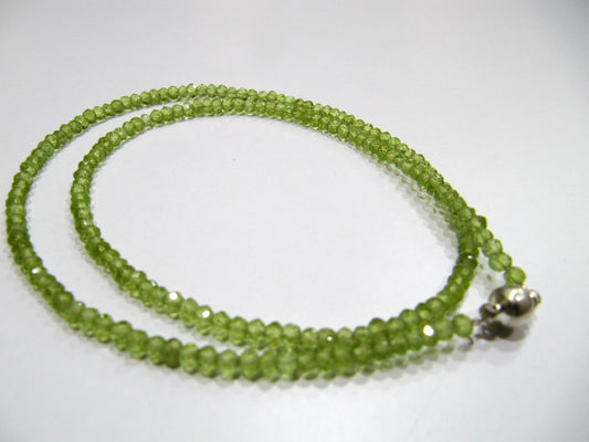 Natural Peridot Rondelle Faceted 3-4mm Beaded Necklace With Magnetic Clasp Choose the Length Green Gemstone Handmade Beaded Jewelry