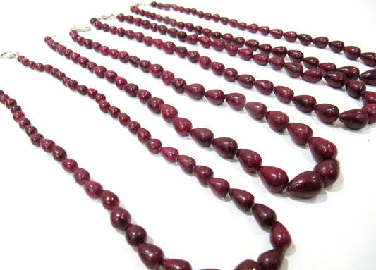 Natural Ruby Corundum Smooth Plain Tear Drop Shape Size 6X9mm to 10X14mm Beads Necklace 18 inch long Wholesale Price
