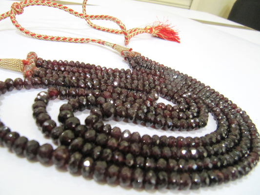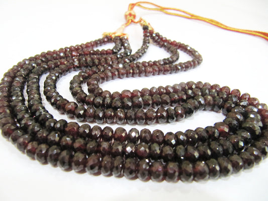 Natural Mozambique Garnet Rondelle Faceted 5 to 8mm Beads Top Quality Beaded 4 Layered Beaded Necklace 18 inches Long Wholesale Price