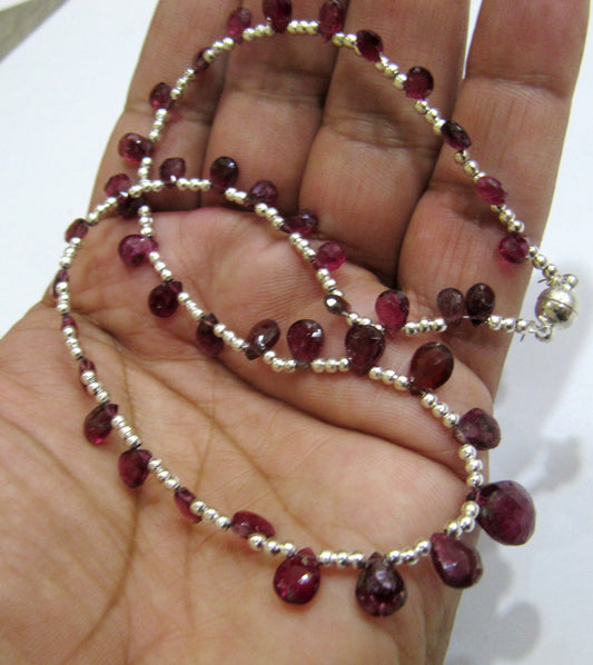 Natural Pink Tourmaline Briolette Faceted Pear Shape 4X6mm to 9X12mm Size Beaded Necklace 16 Inches Long With Magnetic Clasp