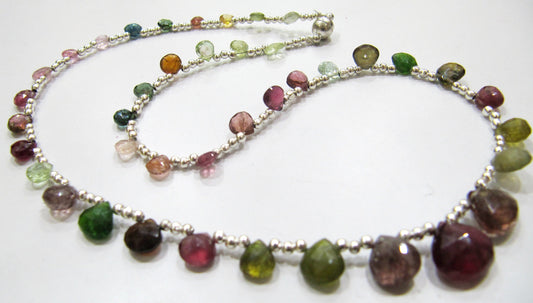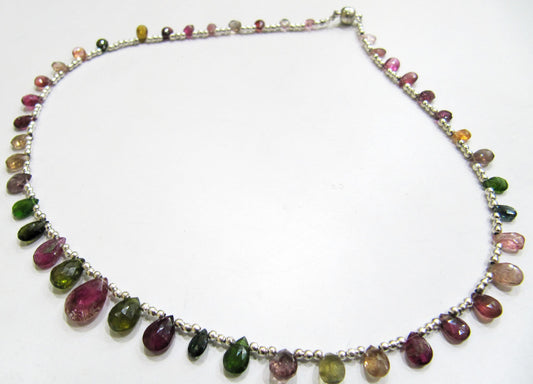 Natural Multi Tourmaline Briolette Faceted Pear Shape 4X6mm to 9X12mm Size Beaded Necklace 16 Inches Long With Magnetic Clasp