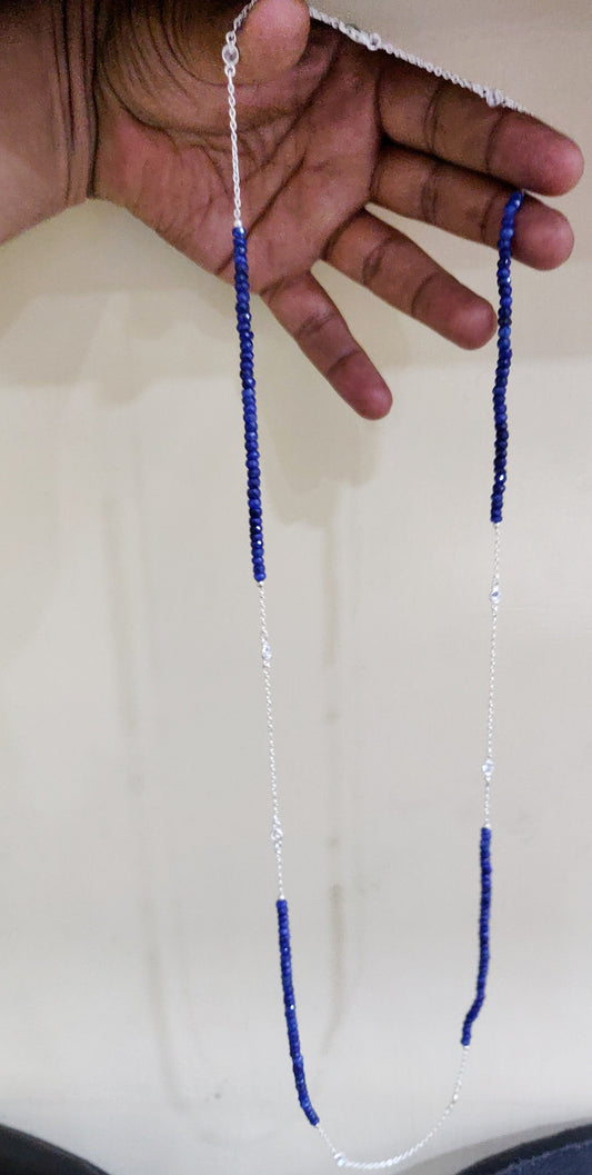 Natural Precious Gemstone 4mm Rondelle faceted Beaded Sterling Silver Necklace 34 Inches Ruby Sapphire Emerald CZ connector Link Necklace