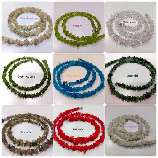 Natural Gemstone Uncut Chip Nugget Beads Necklace 18 Inch long Magnetic Clasp Choose the Stone
