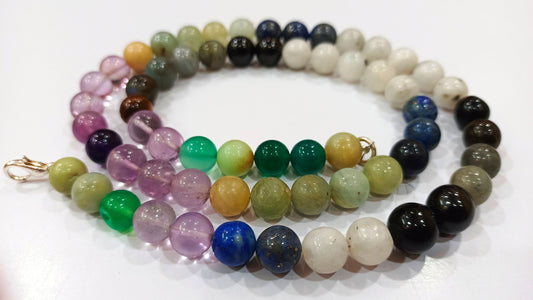 Natural Multi Gemstone Round Shape Plain Smooth 8mm Beaded 20 Inches Necklace Choose Design