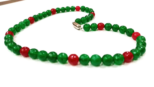 Natural Ruby Emerald Jade Round Faceted 6mm Beads Beaded Necklace With Magnetic Clasp Choose Design and Length