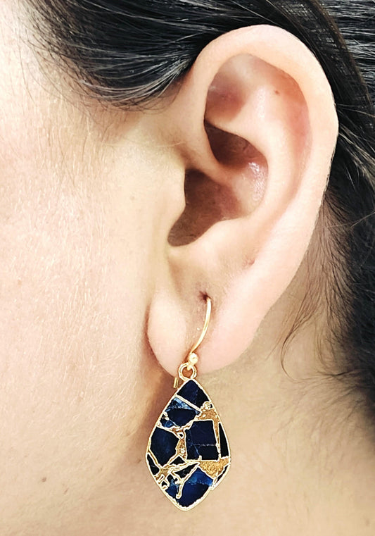 Lapis Lazuli Mohave Turquoise 18 Kt Gold Electroplated Earrings Handmade Gemstones Dangle Jewellery