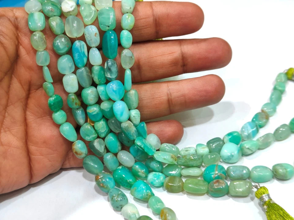 Natural Peruvian Opal Nugget Tumbled Smooth Beads Green Gemstone Beads sold per Strand 8 inches long